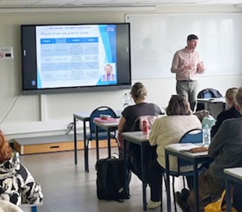 Cette intervention comprenait une partie théorique consacrée à l’audition, animée par M. Gaetan CASTIER, audioprothésiste à Seclin, ainsi qu’une partie pratique portant sur l’entretien et la gestion des appareils auditifs. Également au programme, l’intégration des aides auditives dans le plan de soins, présentée par Mme Audrey ALLARD, référente audition du secteur. |